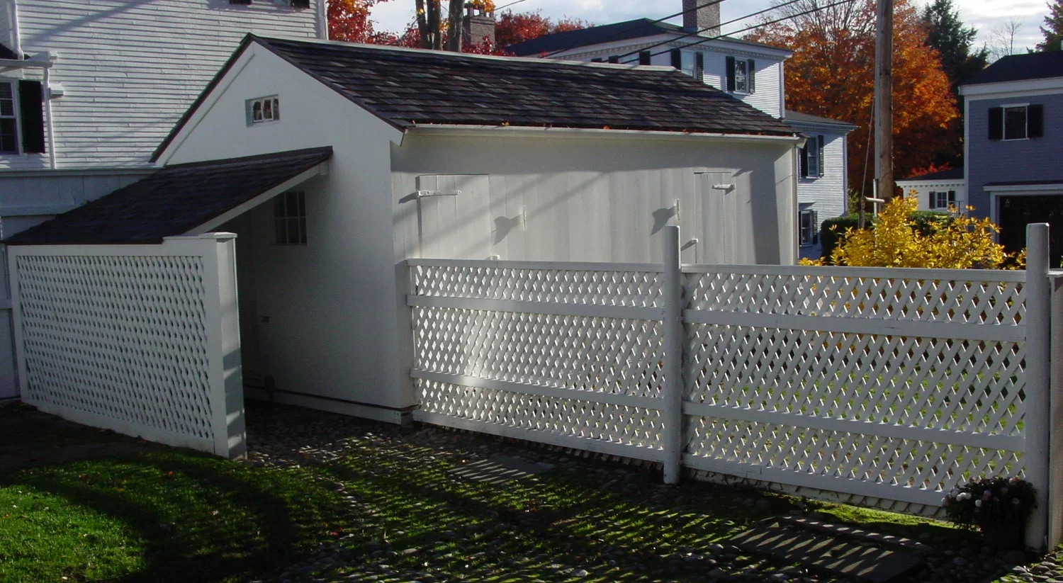 The Cushings’ two-story carriage house was completed shortly after the main house. Originally, the carriage house faced High Street, with cartways allowing access from both High St. and Fruit St.